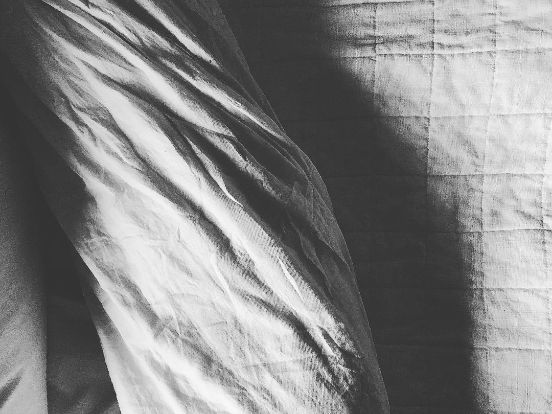 It was still, as only a third floor, in late day, of the first heat wave, could be – only us, as horizontally soundless as astronauts, dreaming, mid-flight, of their earthly beds. You, conning sleep, me, unblinking, at a window of snowy blackout curtains, smuggling sun through its cleavage, awash in cool tones. Three tics for every fifth revolution is the only conversation, between a ceiling fan and me and you. Our bodies, an arrangement of waiting. For it to bifurcate the thickness around us. Into something resembling cold cream. Something else more closely related. To outer space or deep sea or hypopnea or onomatopoeia.